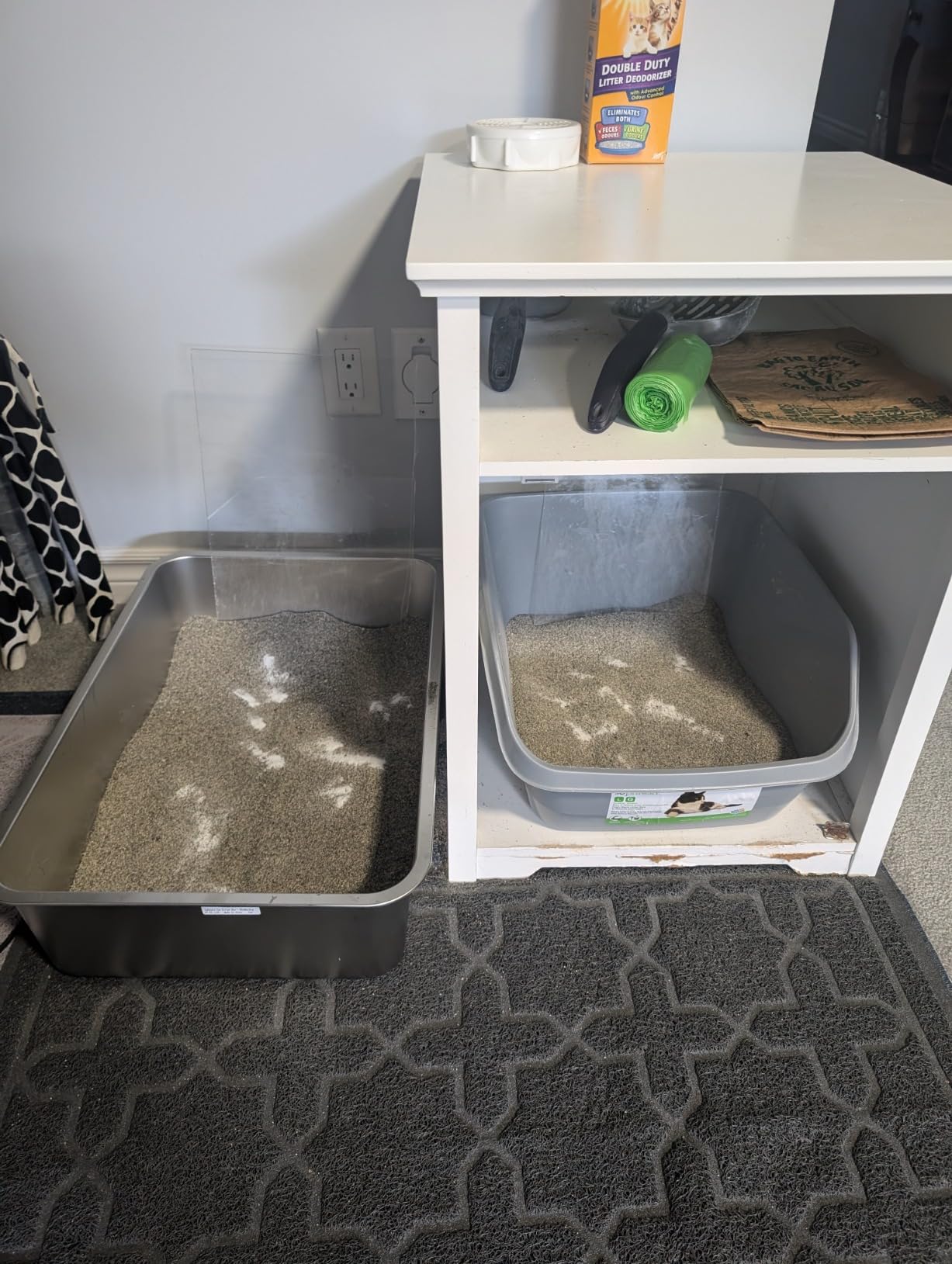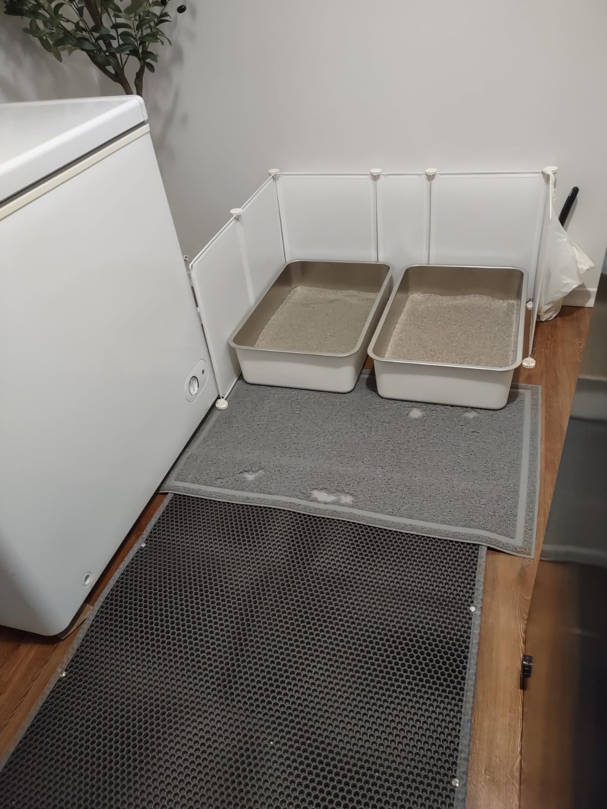 $60 seemed steep for a litter box, I'll be honest. But when I calculated how much I was spending on replacing plastic boxes every year ($20-25), plus all the baking soda and deodorizers ($5-10/month), it actually made sense. I've had this for 8 months now and it still looks brand new. Zero rust, zero smell. My cat took to it immediately. The only "downside" is that you can hear the litter a bit more when they dig, but I just put a thin mat underneath and problem solved.